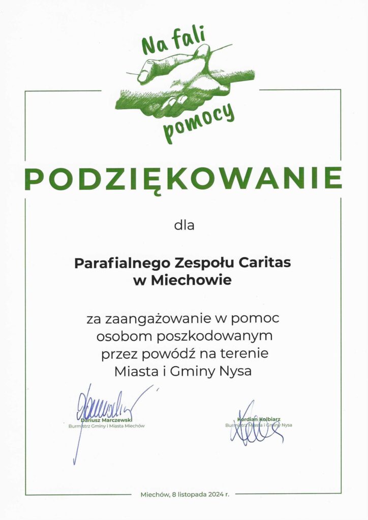 Podziękowania dla Miechowskiego Caritas